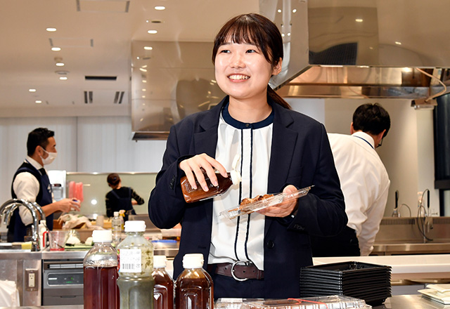 商品販売だけでなく、メニュー提案や使用方法など幅広い提案ができる調味料を中心とした業務用営業に関心を持ち就活。開発と営業を経験できる食品技術営業職に採用され、ヤマサ醤油に入社。